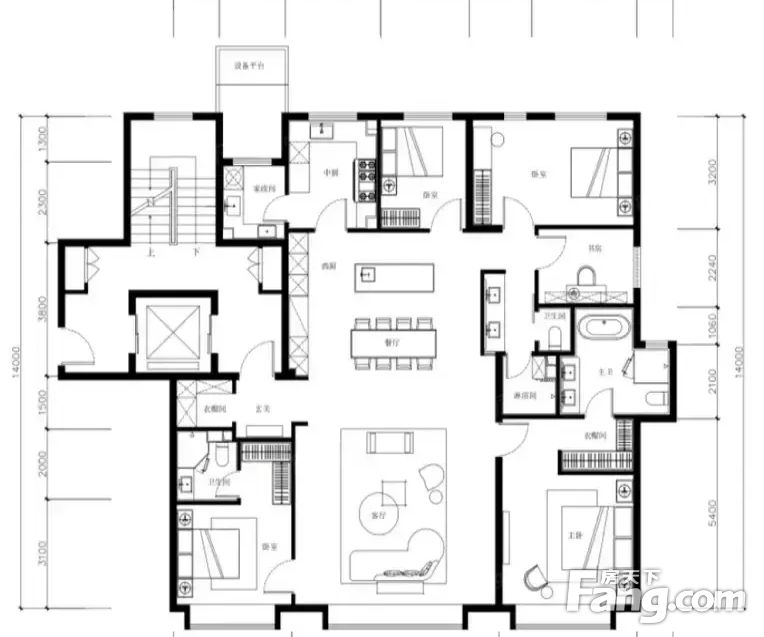 【建面210㎡4居】2800万,4室2厅3卫,南·北朝向,