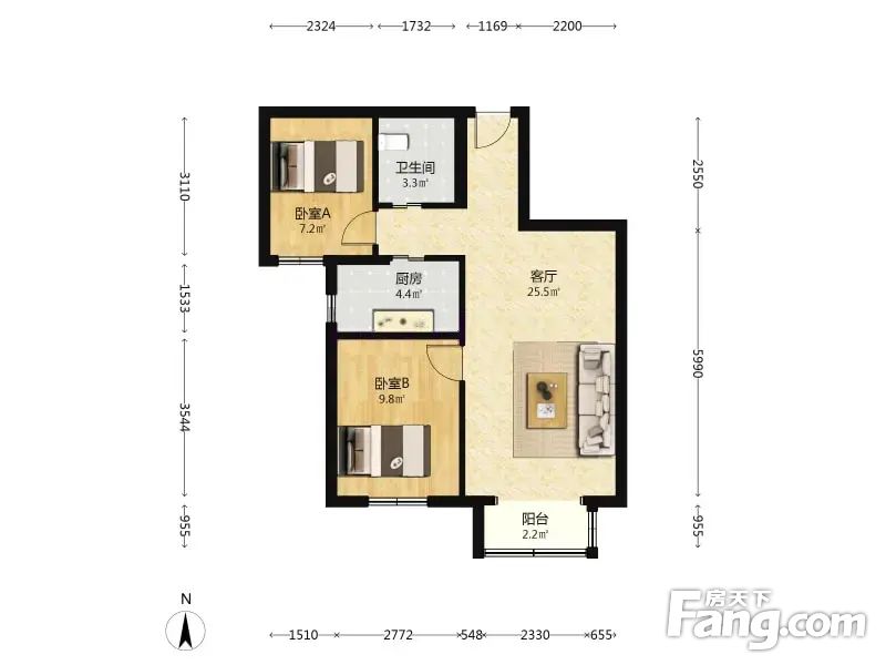金隅嘉和园 2室1厅 77.54平