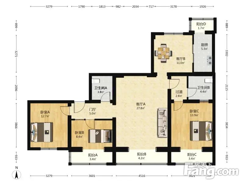 钟界沸0.5 安贞里 3室2厅 147.53平