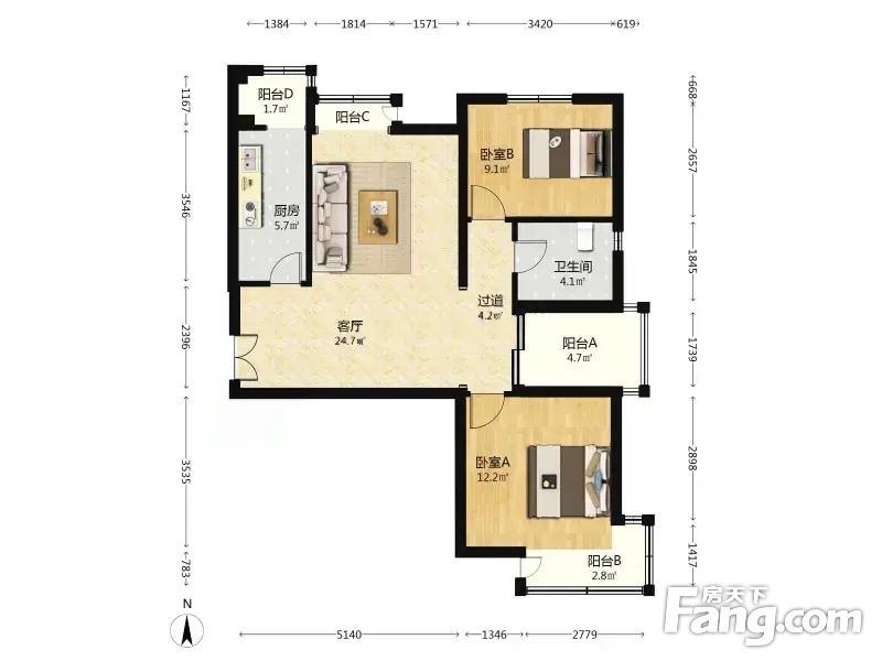(0拥白省5万)融景城 2室1厅 88.97平