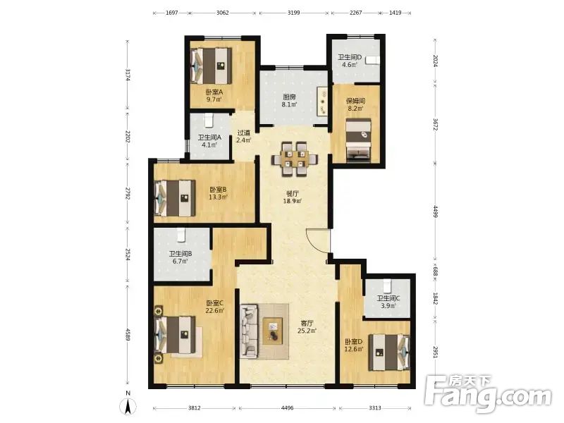 房屋拥有相对宽松的尺寸,布局通透,动静分离,设计豪华