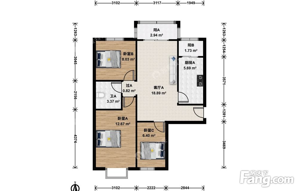 3室1厅1卫