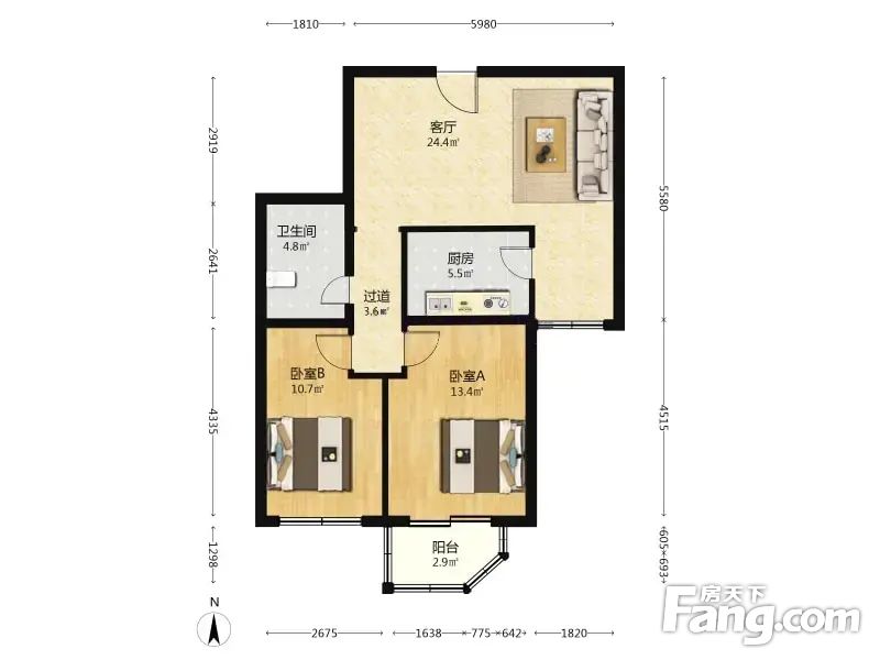 1.此房面积87.19平方米,格局方正,没有浪费空间。
