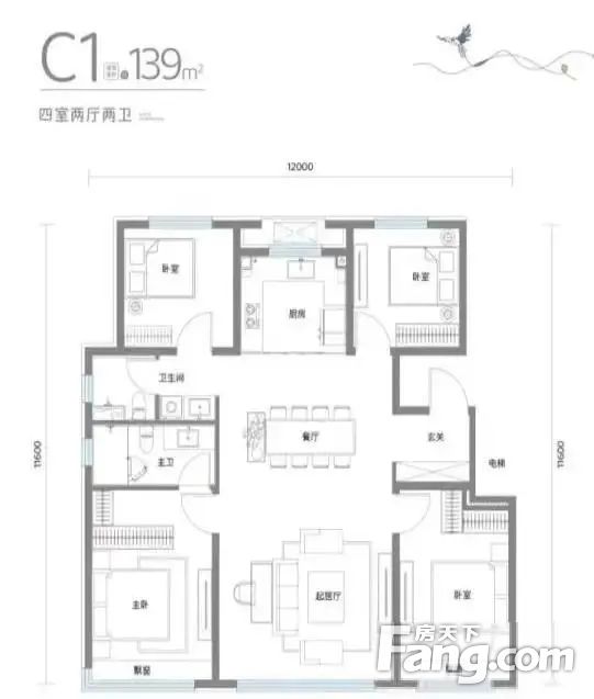 【建面139㎡4居】580万,4室2厅2卫,南.北朝向,(另有:顶层+下跃户型)
