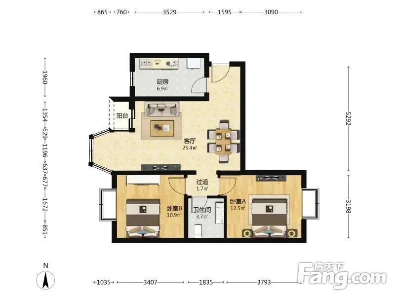 2.朝向:南北,房间采光是没任何问题的。