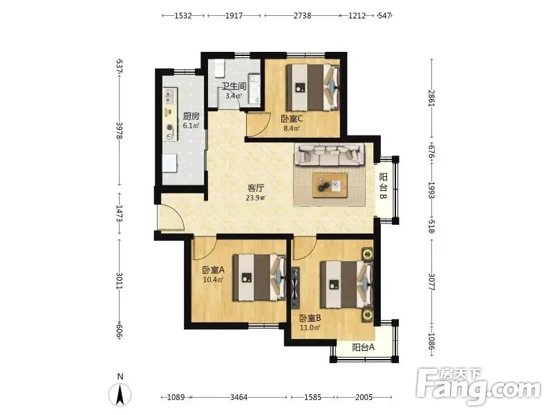 东亚瑞晶苑 3室1厅 88.13平