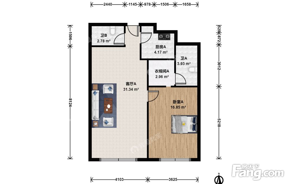 1室1厅2卫