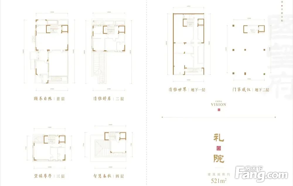 2.合院面积:520㎡,地上四层(320㎡),地下共二层(400m):花园面积(90㎡-130m)