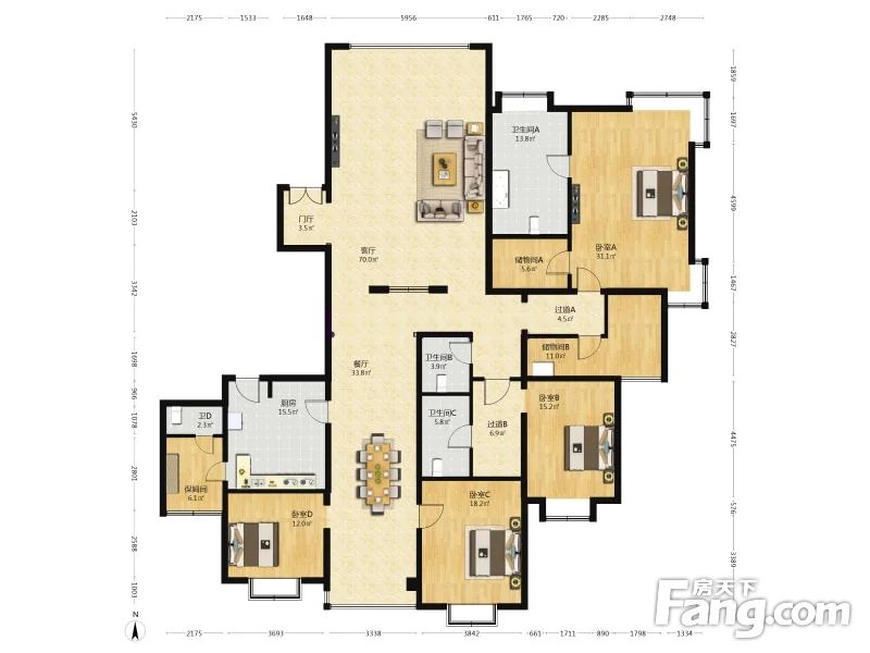 房屋拥有相对宽松的尺寸,布局通透,动静分离,设计豪华