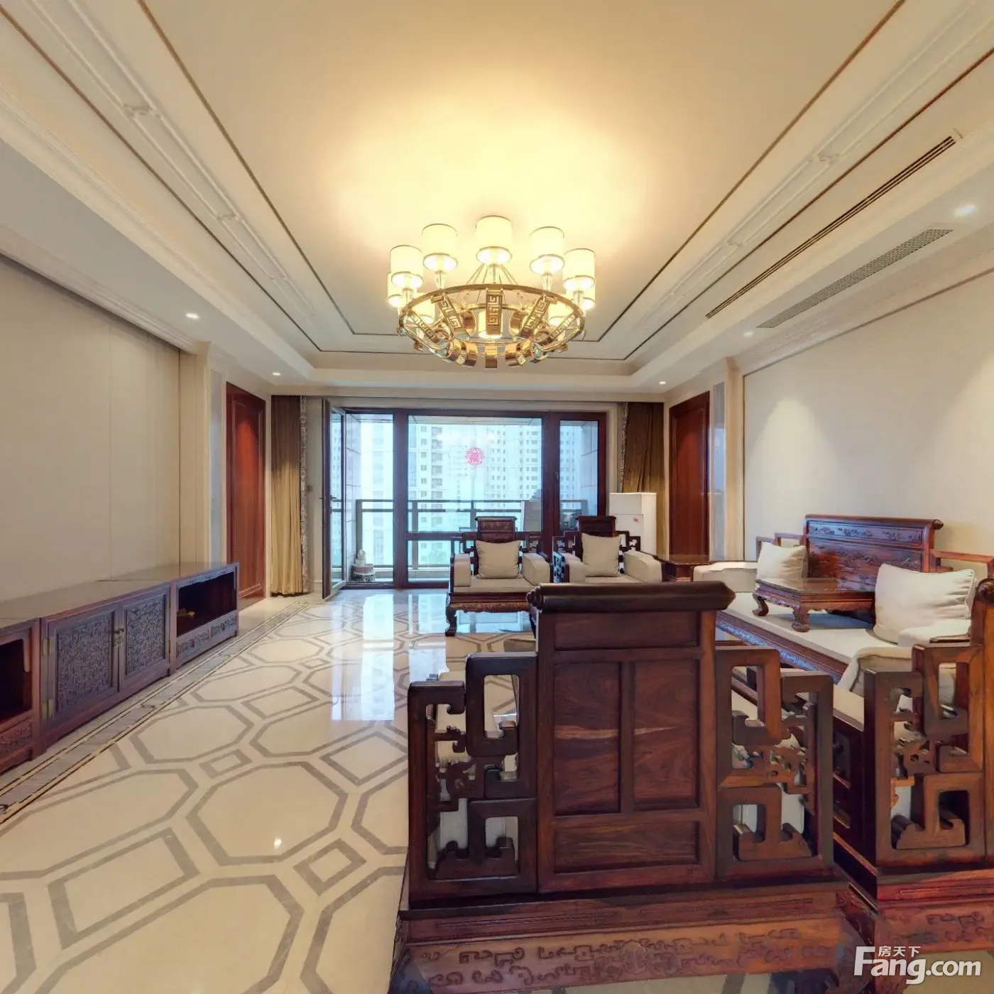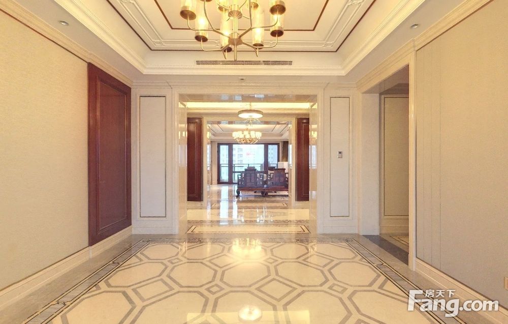 开发商原始精装修,装修标准按1.5万-2万/㎡;大理石地板,红木门槛,档次高。