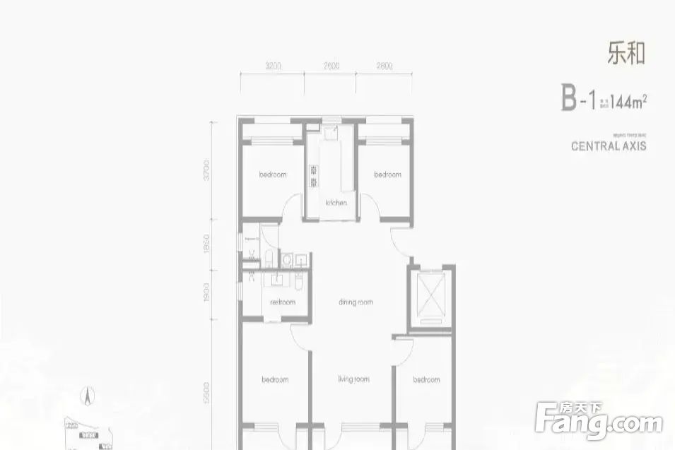 【B-1户型144㎡]1300万/套,144㎡,4室2厅2卫;