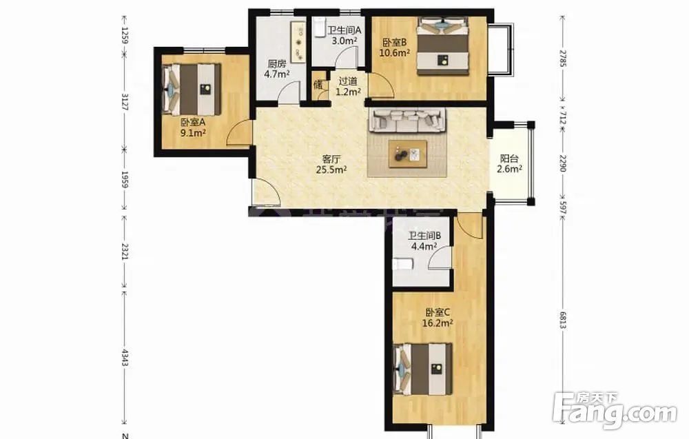 3室1厅2卫