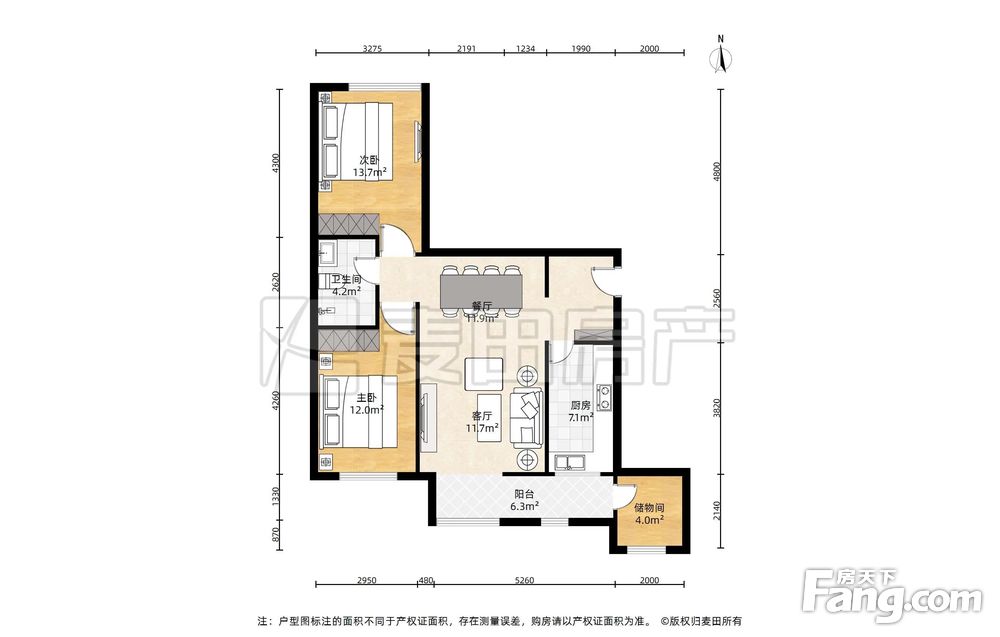 房屋年代∶2010,面积∶101.69平方米,朝向∶南北