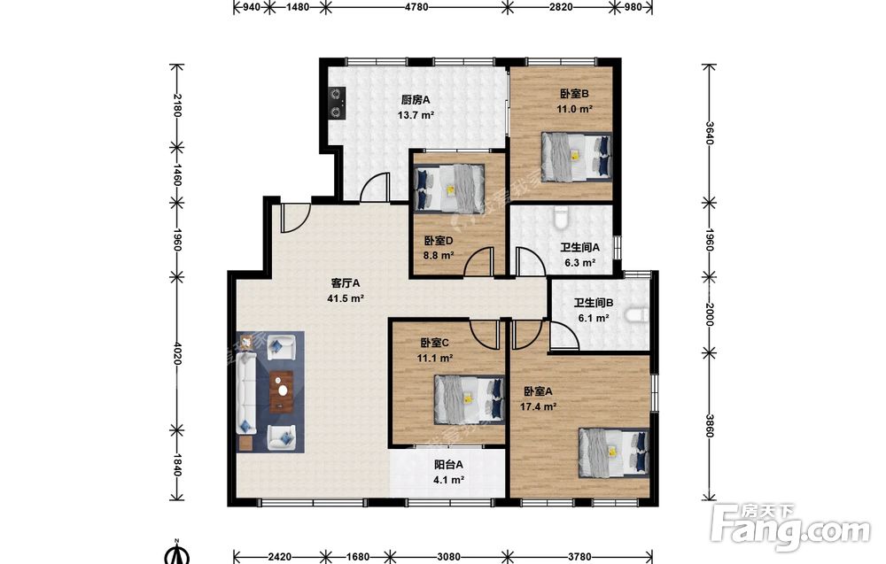 4室1厅2卫