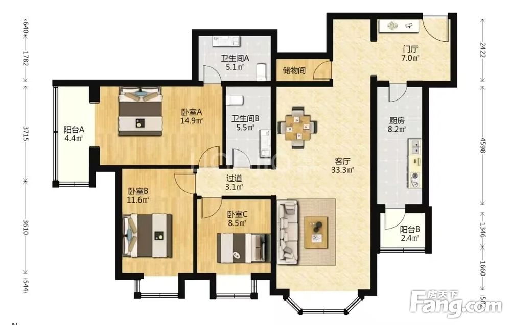 3室2厅1卫