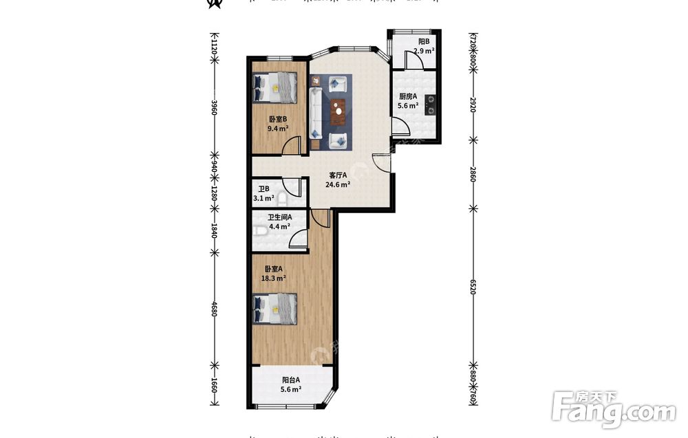 2室1厅2卫