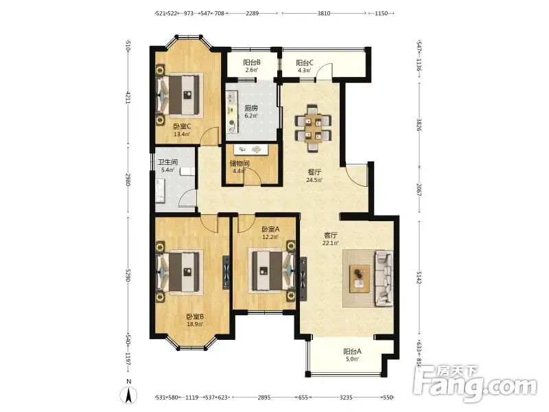 莱茵河畔 3室2厅 155.85平