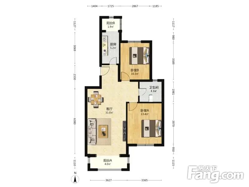 房屋年代:2012年,面积:94.59平方米,朝向:南北,空间利用率高