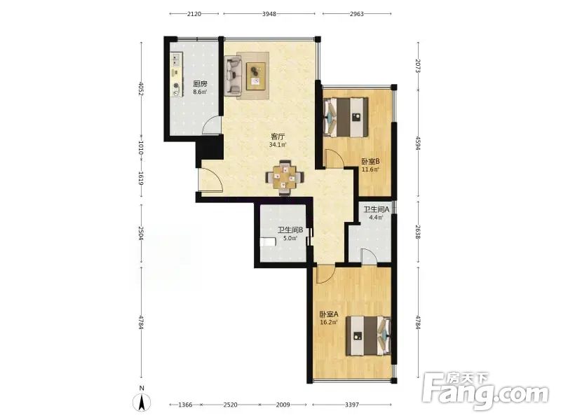 2.朝向:南北,房间采光是没任何问题的。