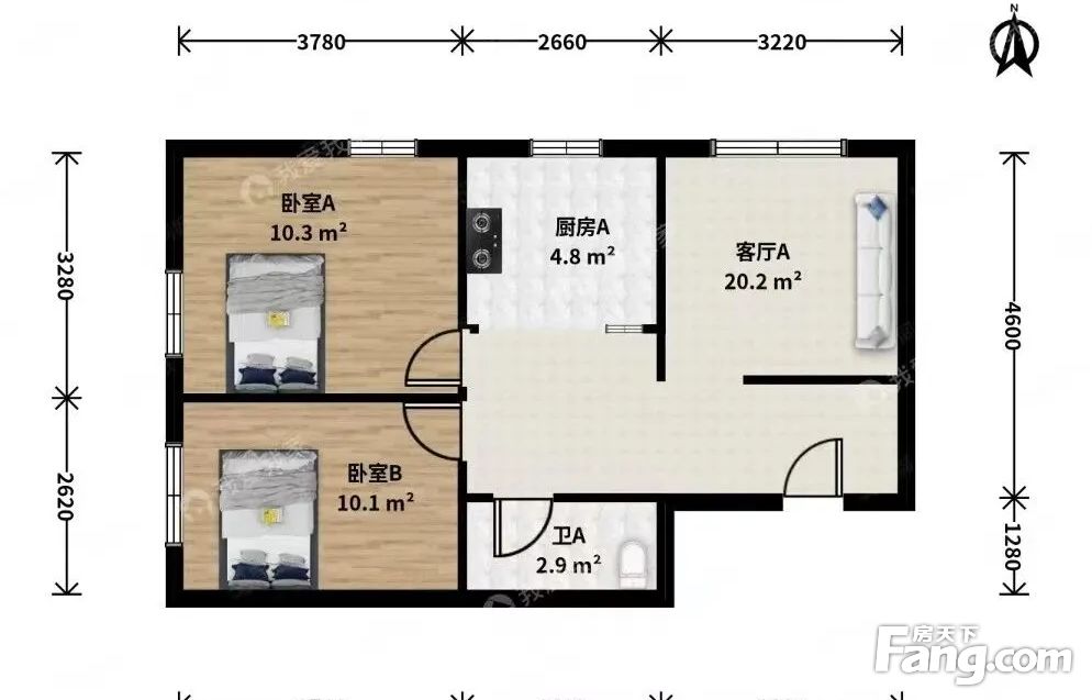 朝阳双桥北花园小区 满五2居 中装修 230万