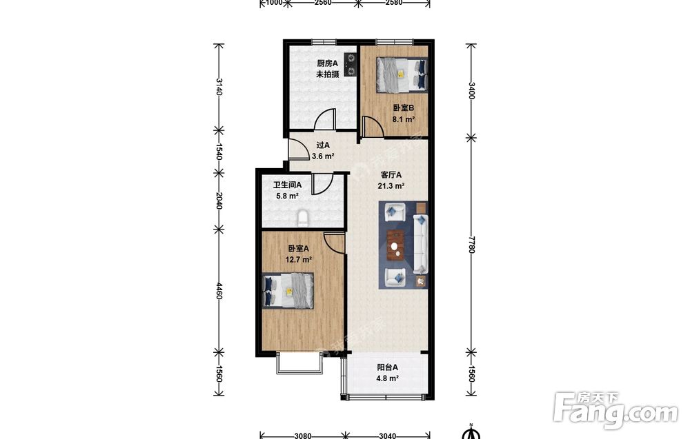 • 当前房源报价为:105.00万