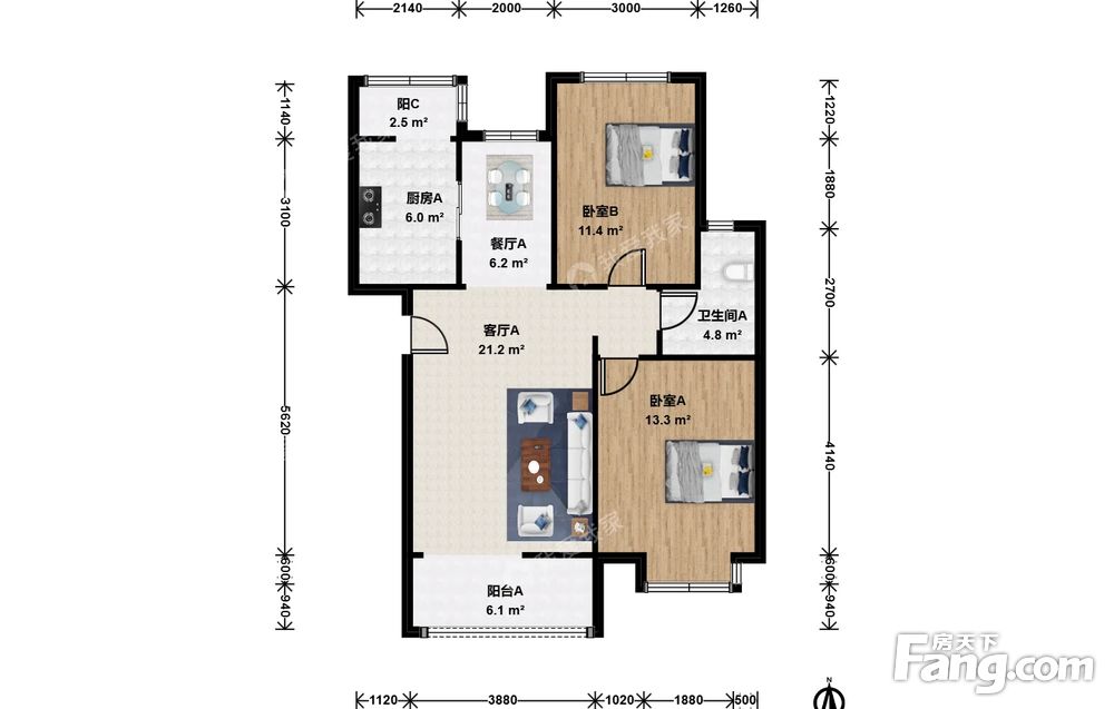 2室2厅1卫
