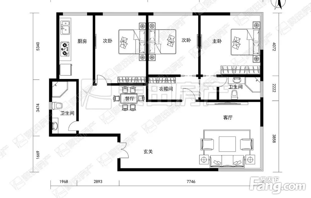 【房源属性】中低层,165平米,东南北通透3居室,明厨双明卫,户型方正