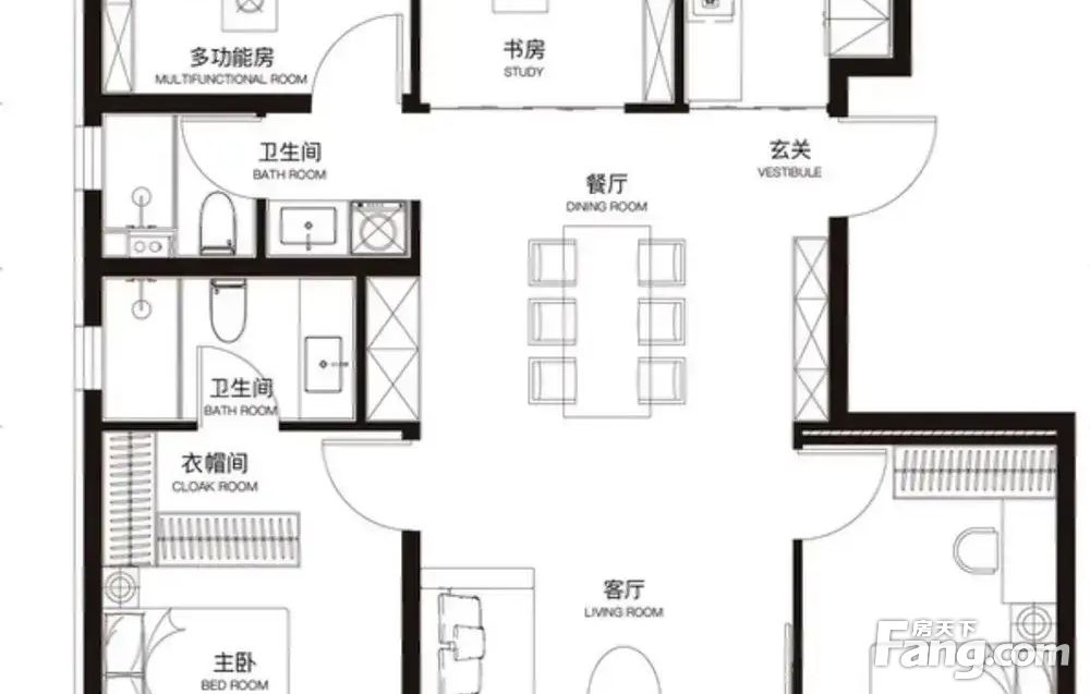 房屋拥有相对宽松的尺寸,布局通透,动静分离,设计豪华