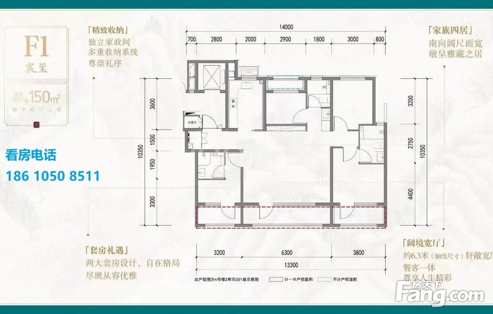 【建面165㎡4居】1400-1450万,4室2厅3卫, 南·北朝向,楼栋分布于4号楼/5号楼