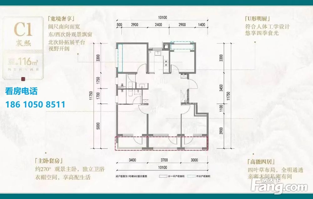 【建面116㎡4居】910-970万,4室2厅2卫, 南·西·北朝向