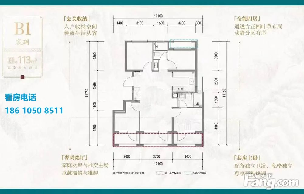 【建面113㎡4居】900-950万,4室2厅2卫, 南·北朝向
