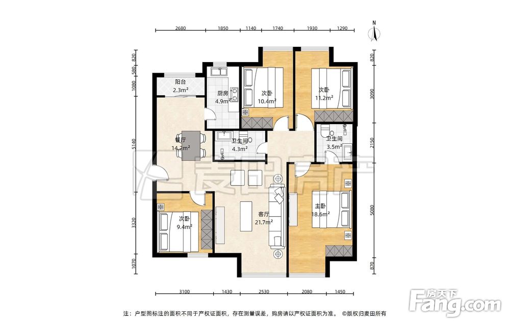 房屋年代∶2011,面积∶142.27平方米,朝向∶南北