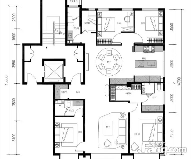 房屋拥有相对宽松的尺寸,布局通透,动静分离,设计豪华。
