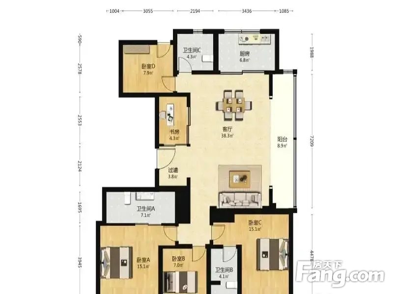 房屋拥有相对宽松的尺寸,布局通透,动静分离,设计豪华