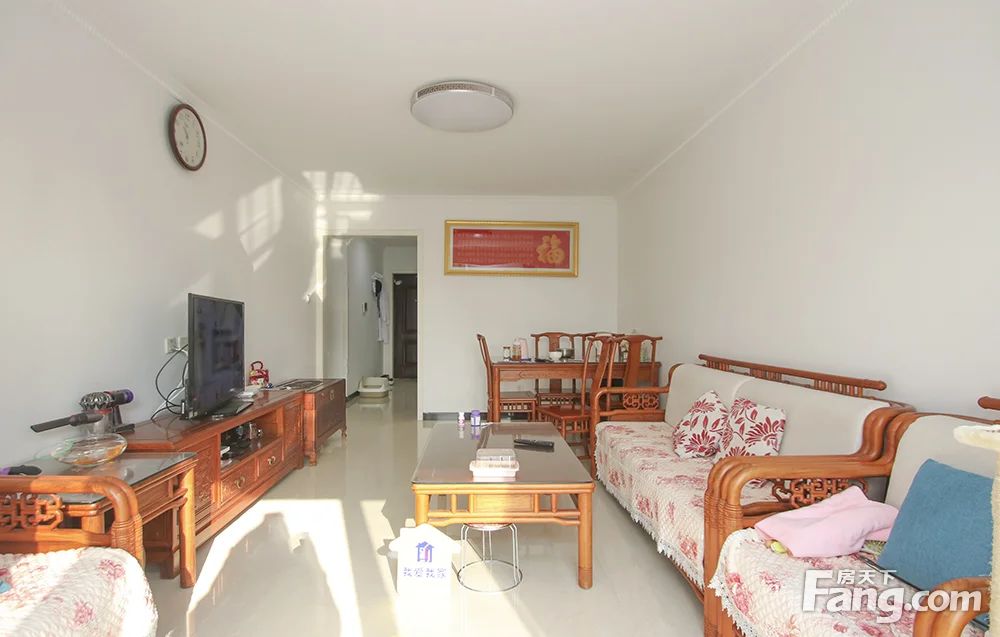 此房南向两居,户型方正,客厅朝南,卧室朝南,卧室带阳台,没有浪费面积