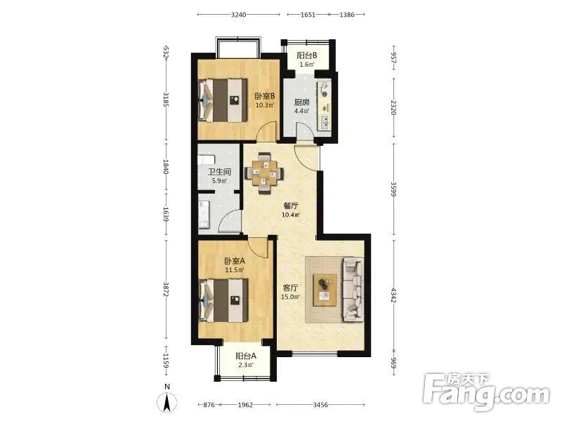 2.朝向:南北,房间采光是没任何问题的。