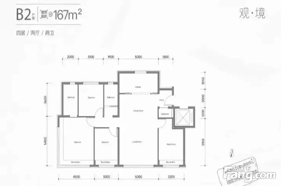 【建面167㎡4居】1300万,4室2厅2卫,南·北朝向