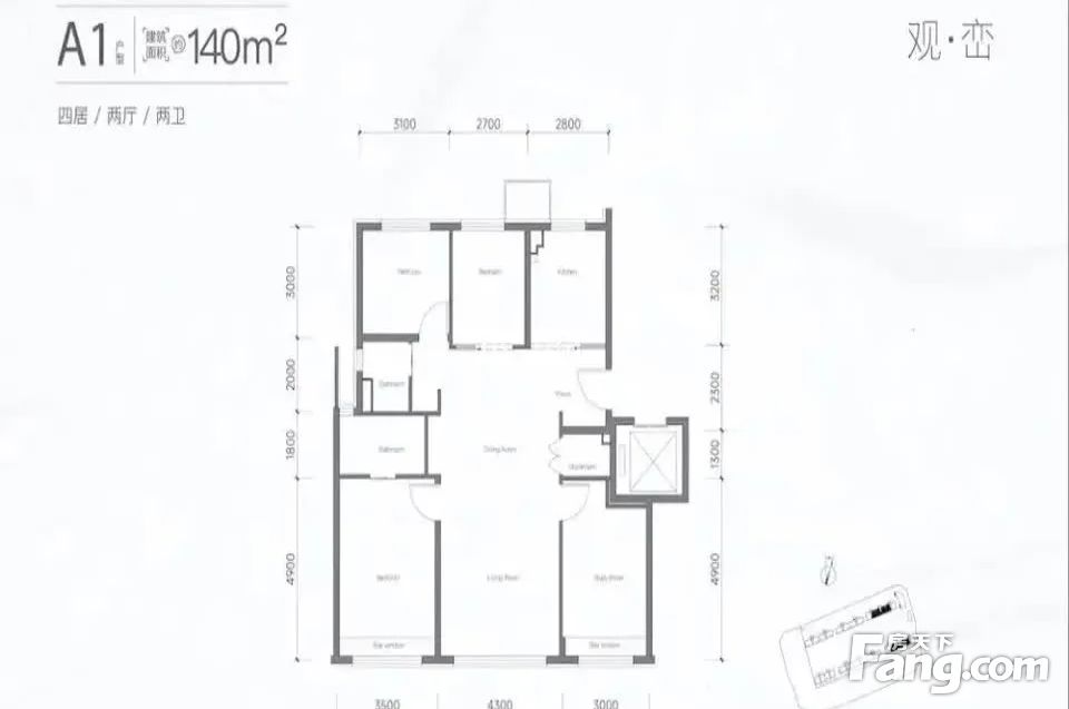 【建面140㎡4居】1000万,4室2厅2卫,南·北朝向