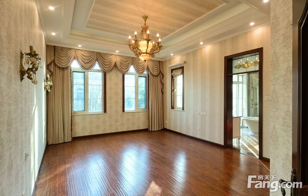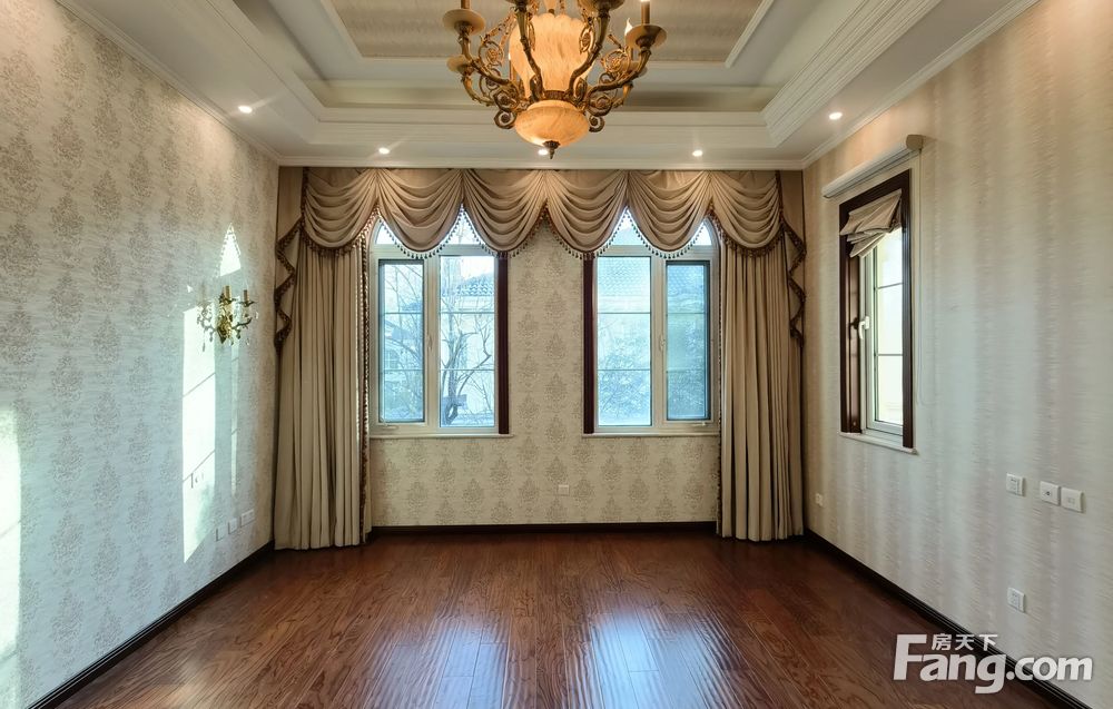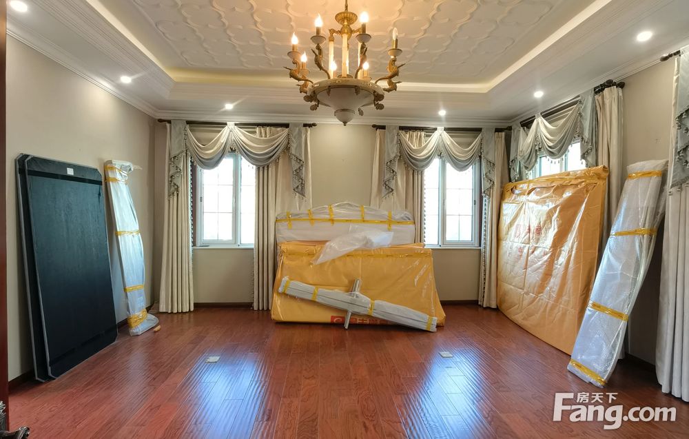 首层入户7米挑高客厅,西侧和北侧,南侧三面采光,南向餐厨一体,东侧一间卧室和北侧一间房间;