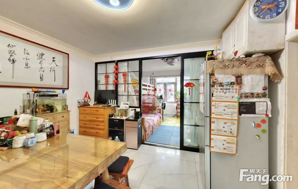 房子是南北通透正规三居,双卧室朝南,次卧朝北,正规客厅,户型方正,没有浪费面积。