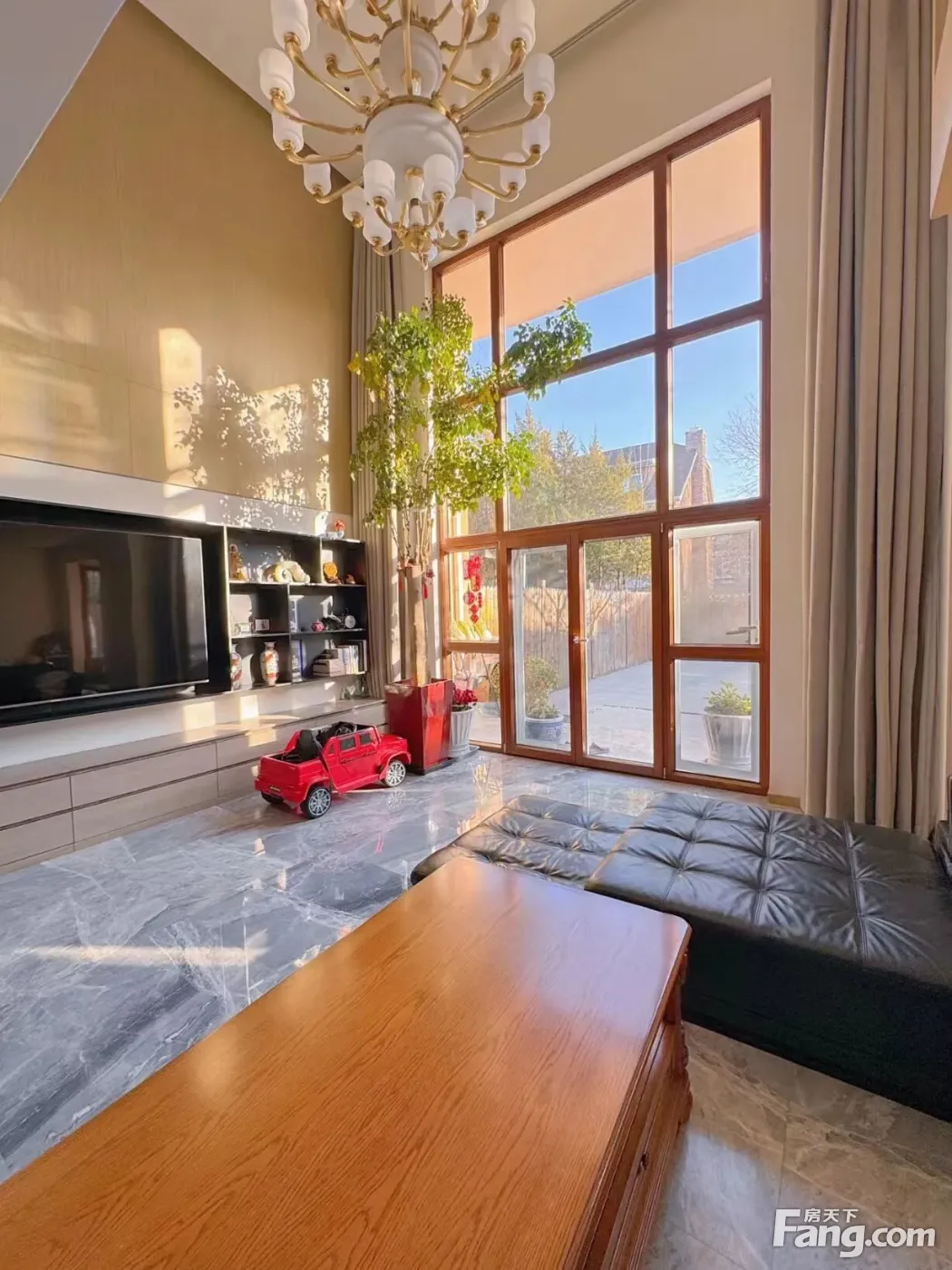 3、室内南向6米挑高客厅,
