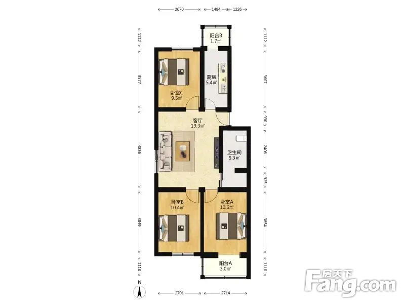 滨河西里北区 3室1厅 89.47平 边户明厅南北通透三居室