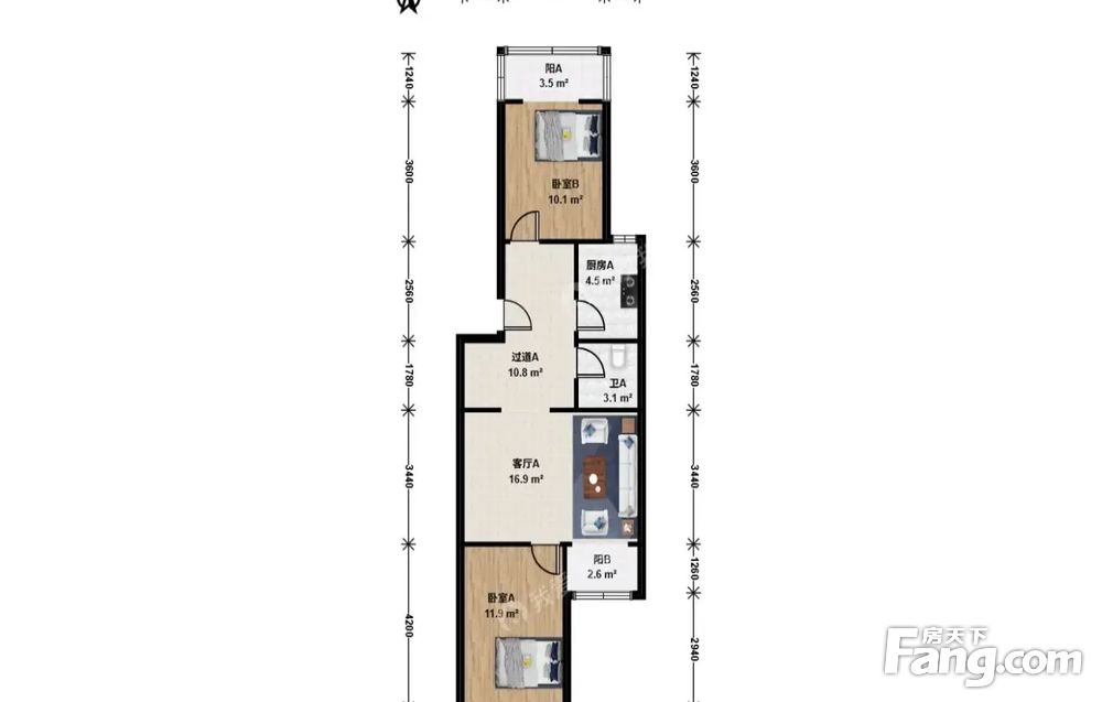 房山城关·永安路小区·2室·1厅中间层 南北通透 户型方正