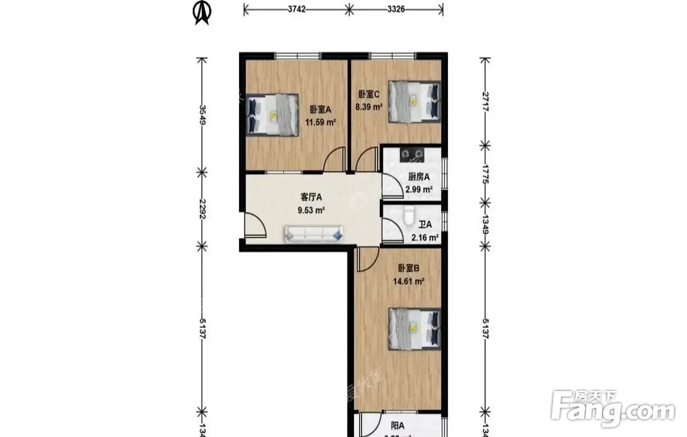 • 当前房源报价为:59.00万