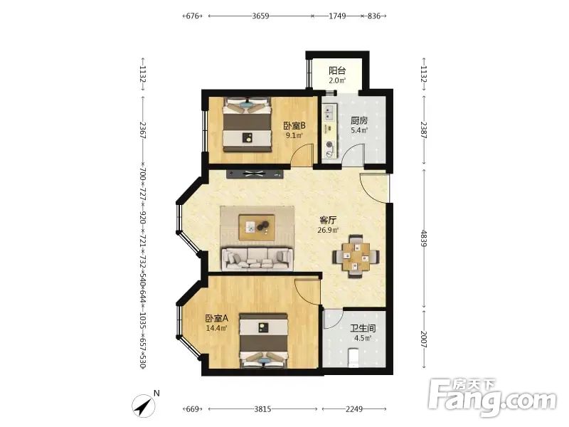 3.户型正气:南北的户型、格局周正合理、无浪费面积。