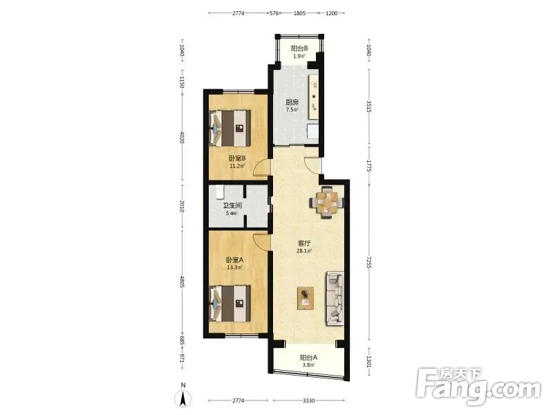 户型介绍这个户型真的没得挑,经典板楼两居室,有室内阳台,通透性很好,小区中间位置不临街。