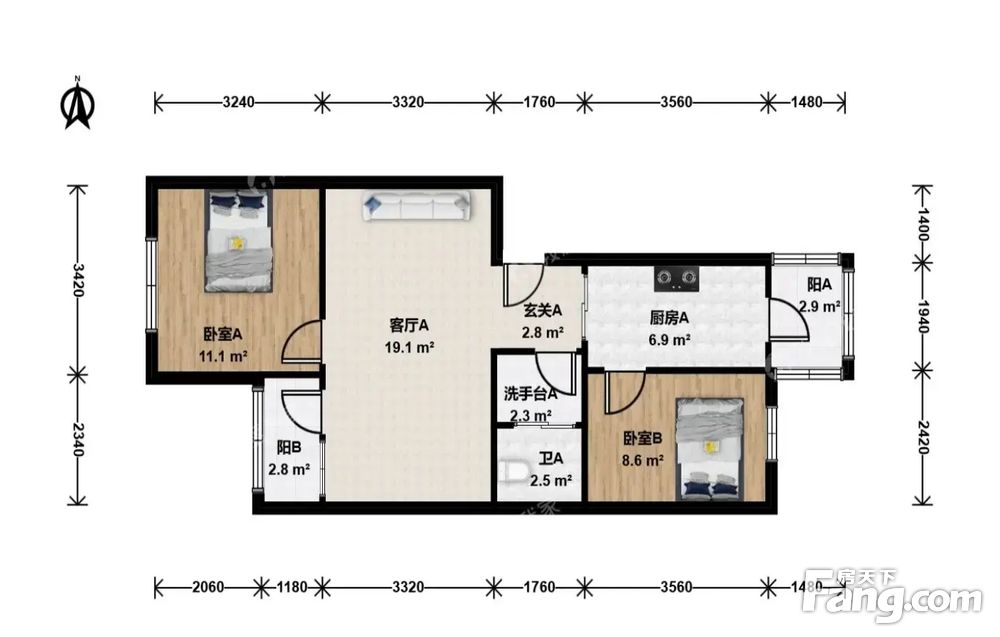76.95平米
