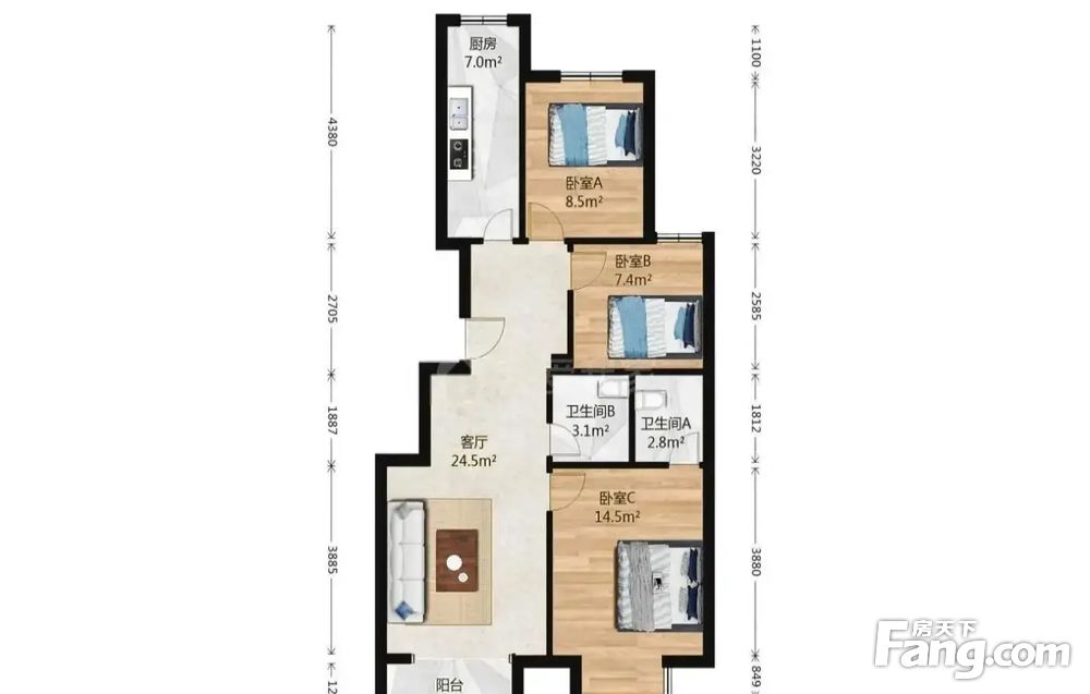 3室1厅2卫
