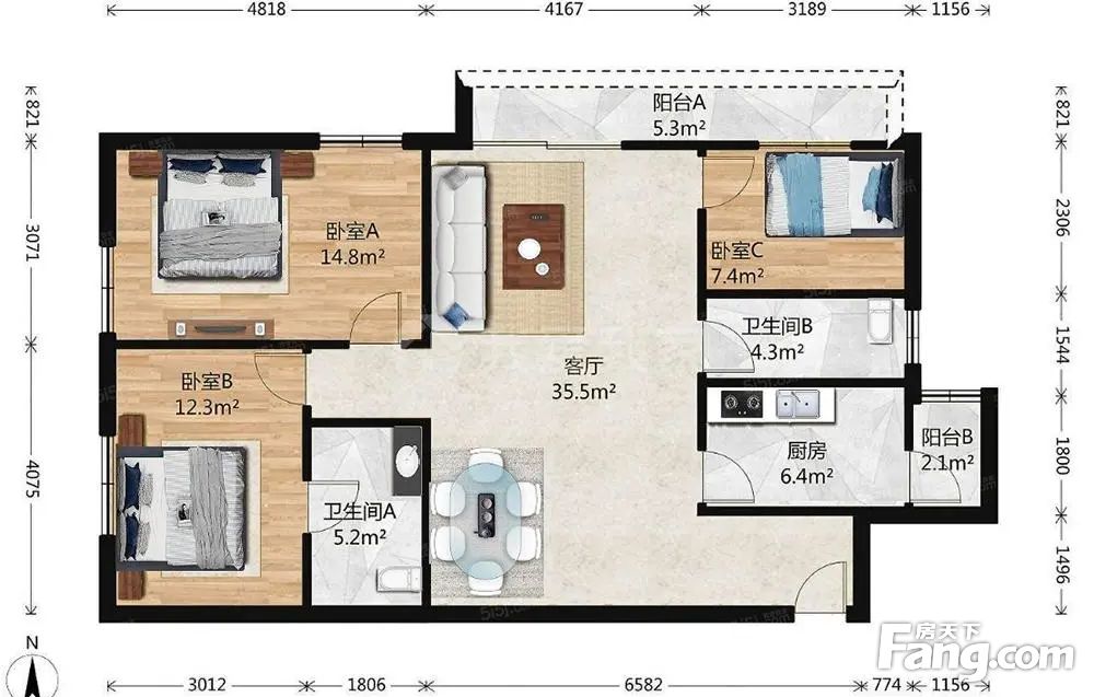 3室1厅2卫