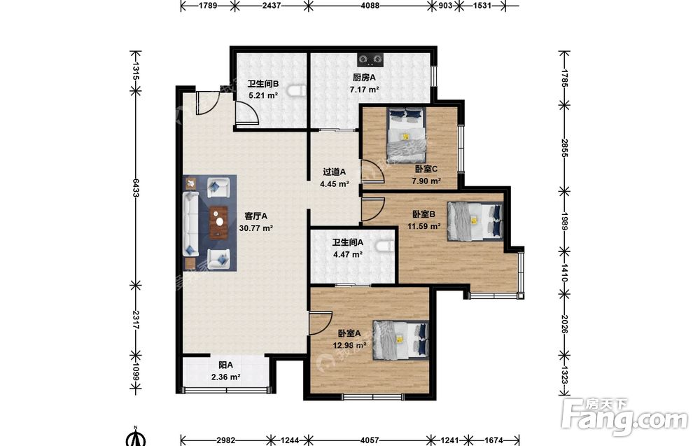 3室1厅2卫
